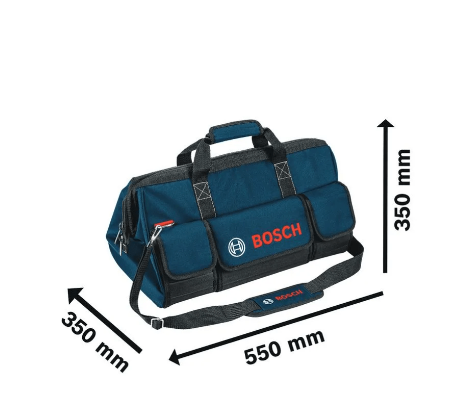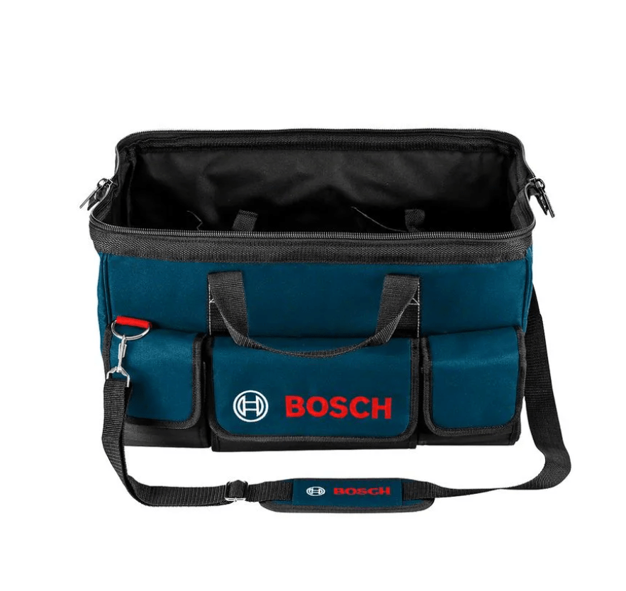 A bolsa grande Bosch é fabricado com material de nylon super resistente e tem capacidade de até 25 kg para carregar suas ferramentas e acessórios com total segurança e praticidade. Possui base emborrachada e reforçada, 3 compartimentos externos com fixação autoaderente para guardar acessórios, ferramentas manuais e o que mais precisar. Conta com alça maior para mais comodidade durante o transporte.