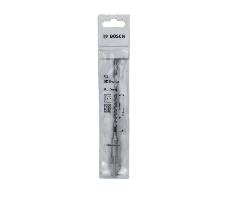 Broca SDS Plus 1 5,5 x 160 mm para Concreto BOSCH-2608680261 Descrição do Produto Brocas apropriadas para concreto, alvenaria e concreto armado, indicadas para todos os martelos perfuradores com encaixe SDS-plus. Fabricado em metal duro padrão, possui boa eliminação do pó da perfuração, espiral dupla forma em U e 2 arestas de corte. - Medidas: Diâmetro: 5,5 mm Comprimento: 160 mm Ref.: BOSCH-2608680261