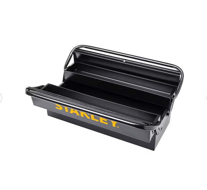 NOVA LINHA DE ARMAZENAGEM EM METAL STANLEY. Uma ampla gama de caixas e carrinhos para proporcionar máxima segurança e fácil deslocamento em qualquer trabalho de mecânica e indústria. Oferecem uma solução resistente para transportar suas ferramentas com segurança. Caixa sanfonada com 3 gavetas fabricada em aço carbono com pintura em pó eletrostática para resistência à corrosão.
