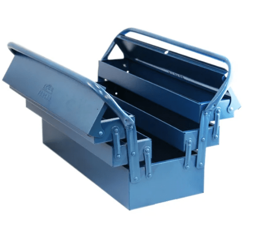 Caixa metálica de ferramentas com 5 gavetas articuladas e estrutura reforçada, ideal para armazenar e organizar ferramentas manuais, peças e acessórios. Design tipo "sanfonado", permite fácil acesso ao conteúdo e maior praticidade no dia a dia. Fabricada em chapa de aço com pintura eletrostática, garantindo resistência à corrosão e ao uso intenso.