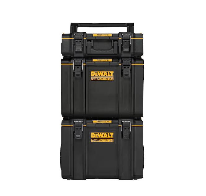A CAIXA DE FERRAMENTAS EM TORRE TOUGHSYSTEM 2.0 combina 3 produtos essenciais de armazenamento ToughSystem® 2.0 em uma conveniente torre rolante. Com a caixa de ferramentas ToughSystem® 2.0, a caixa de ferramentas extragrande e a caixa de ferramentas com rodízio, esse conjunto de armazenamento móvel foi projetado com travas laterais de conexão automática patenteadas que permitem a operação com uma mão e travas frontais de metal de duas peças atualizadas que proporcionam a durabilidade necessária para locais de trabalho difíceis. As caixas de ferramentas ToughSystem® 2.0 vêm com classificação IP65 e são resistentes à poeira e à água. Mantenha as necessidades menores sempre à mão com a caixa de ferramentas ToughSystem® 2.0, que inclui dois copos organizadores grandes com divisórias removíveis, e a caixa de ferramentas extragrande e com rodas, que inclui uma bandeja interna removível. A ToughSystem® 2.0 Rolling Tower pode ser adicionada a qualquer solução de armazenamento e é compatível com todos os produtos ToughSystem®.