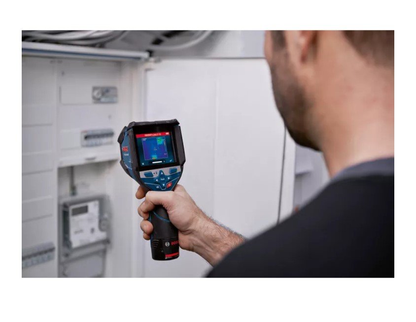 Detector Térmico Termômetro com Bluetooth Bosch GIS 1000 C O Detector Térmico Termômetro com Bluetooth Bosch GIS 1000 C é um equipamento profissional desenvolvido para realizar medições precisas de temperatura de superfície, ambiente e umidade relativa do ar. Ele permite medir temperaturas que variam de -40 °C até 1000 °C, com alta precisão e resposta rápida, sendo ideal para uso em instalações elétricas, manutenção predial, sistemas de climatização, diagnóstico automotivo e inspeções na construção civil. Possui uma câmera integrada que registra imagens com os dados térmicos sobrepostos, uma tela colorida de 2,8” que facilita a visualização das medições e sensores ambientais que analisam temperatura do ar, ponto de orvalho e pontes térmicas. O GIS 1000 C conta com conectividade Bluetooth e USB, o que possibilita a transferência de dados para smartphones ou computadores, além de armazenamento interno para mais de 200 imagens. Acompanha pilhas, cabo USB e manual, sendo uma ferramenta robusta, portátil e confiável para profissionais que exigem precisão em ambientes técnicos e industriais.