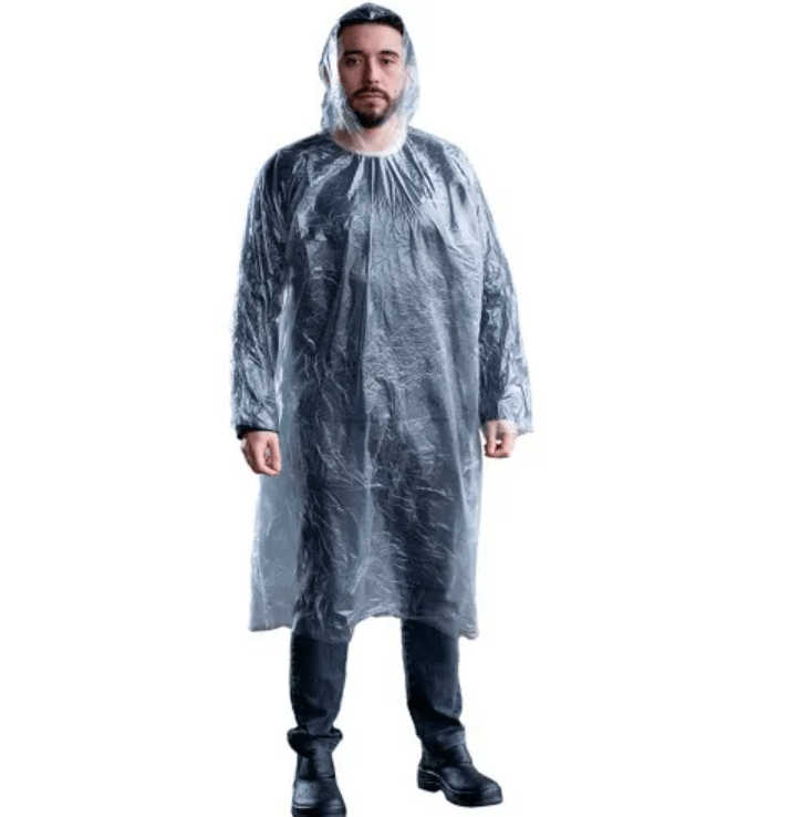 Capa de chuva descartável transparente
