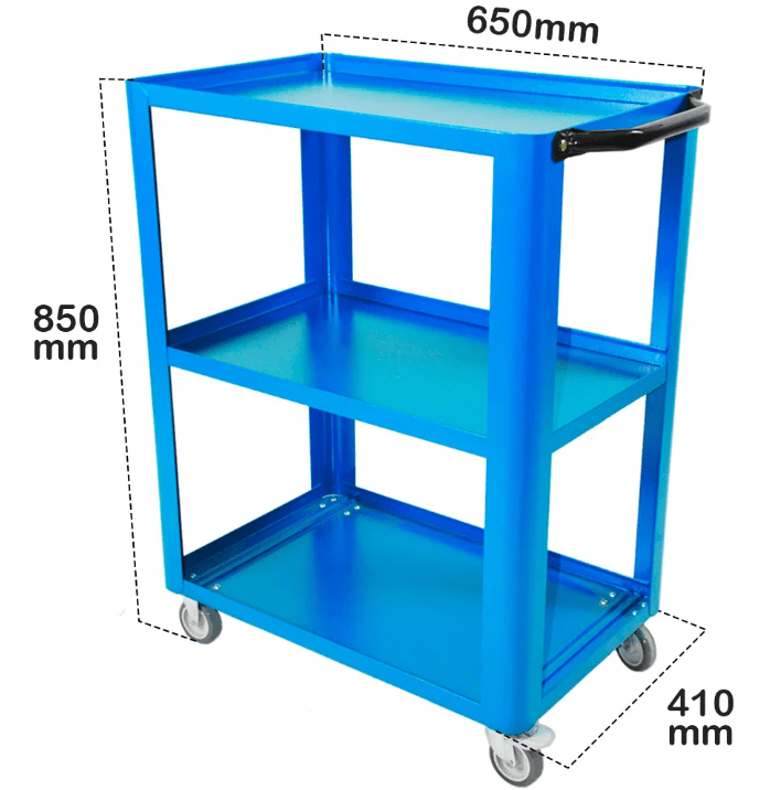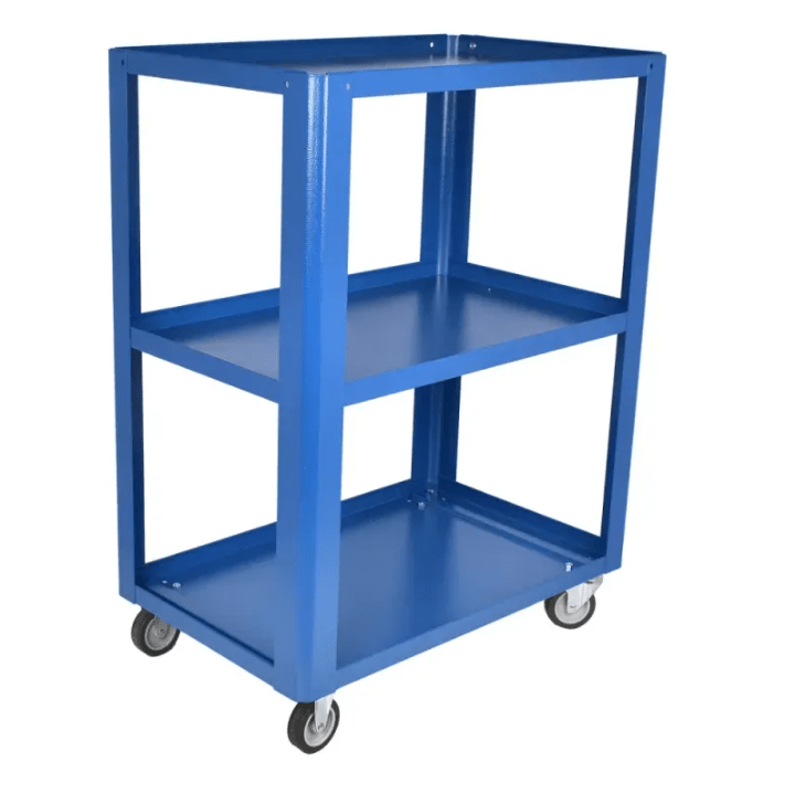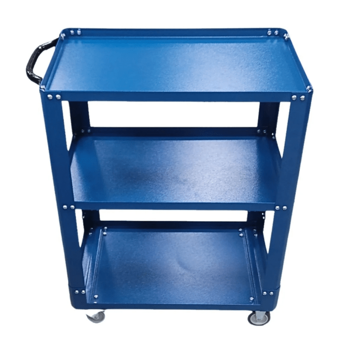 Carro utilitário ideal para organização e transporte de ferramentas e materiais diversos em oficinas, indústrias e manutenção geral. Estrutura metálica desmontável, prática para transporte e armazenamento. Com duas prateleiras espaçosas, permite fácil acesso aos itens e excelente aproveitamento do espaço.