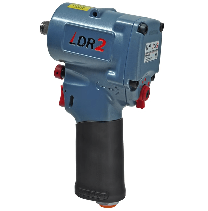 Mini Chave de impacto pneumática da linha industrial LDR2, indicada para aperto e desaperto de parafusos, em Auto Centers, oficinas mecânicas, concessionárias, borracharias, manutenção industrial e linhas de montagem