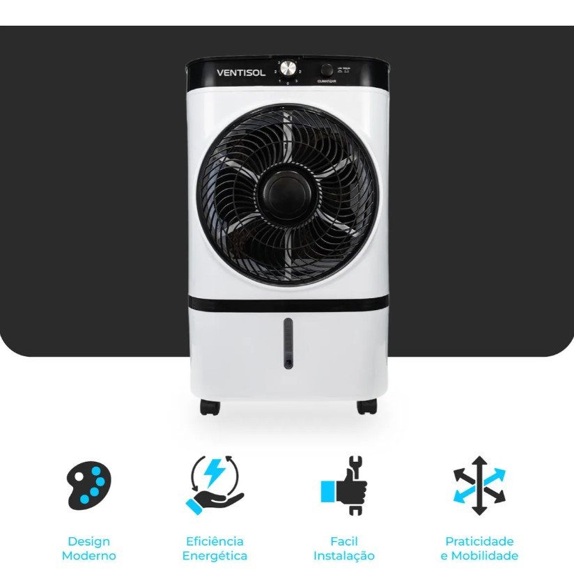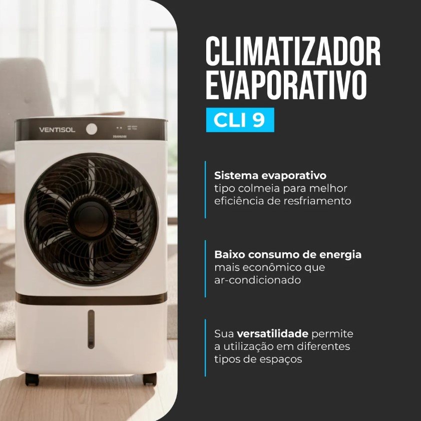 O novo Climatizador de Ar Ventisol CLI09 é a escolha ideal para quem busca alívio nos dias quentes com baixo consumo de energia, baixo ruído e funcionalidades completas.