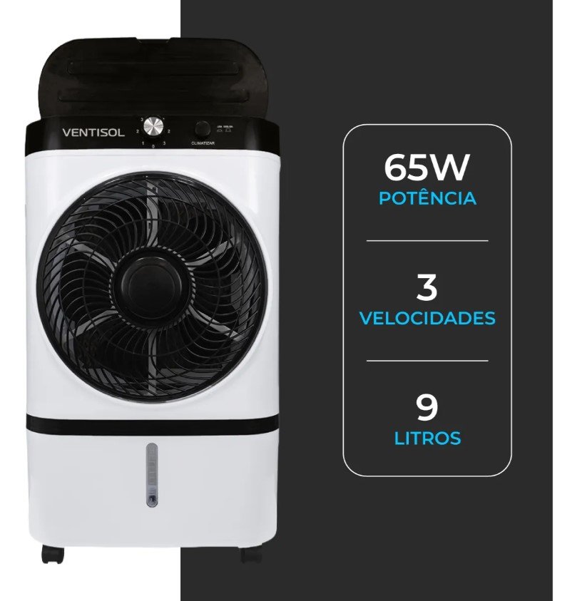 Climatizador de Ar Evaporativo CLI-09 65W Cap. de Agua 9L 220V -Ventisol