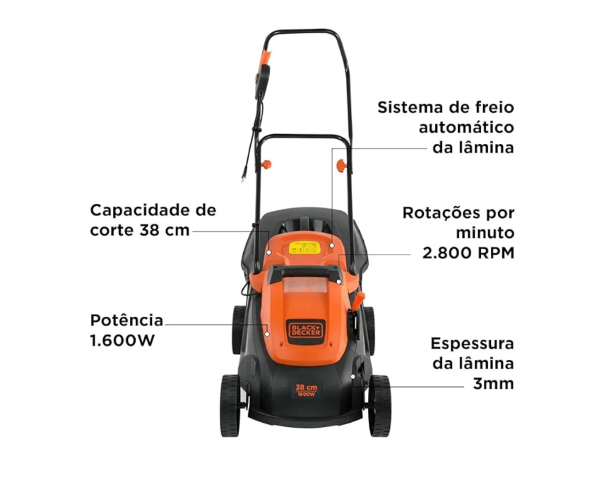 Cortador de Grama Elétrico 1600W 220V com Coletor BLACK+DECKER-GR3800