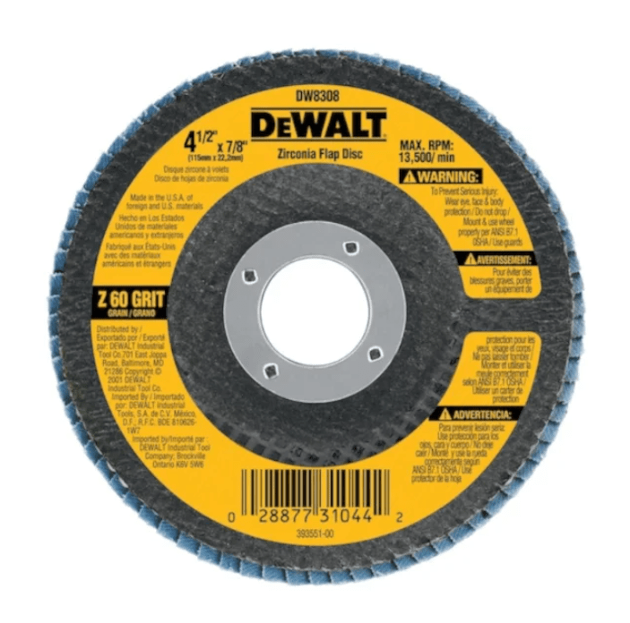 Disco Flap 4.1/2'' Grão 60 Base Fibra Curvo DW8308-BR - DEWALT