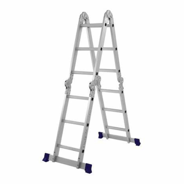 Escada Multifuncional 4 X 3 Degraus - MOR A Escada Multifuncional 4x3 da marca Mor é uma ferramenta versátil, projetada para atender tanto a necessidades domésticas quanto profissionais. Composta por quatro partes de três degraus cada, totalizando 12 degraus, ela oferece até oito configurações diferentes, adaptando-se a diversas situações e proporcionando maior alcance e estabilidade. Sua estrutura é fabricada em alumínio, garantindo leveza e resistência, enquanto as dobradiças em aço e as catracas de alta qualidade asseguram durabilidade e segurança durante o uso. Uma característica distintiva deste modelo é a presença de chapas de aço que podem ser encaixadas, funcionando como plataforma e permitindo que a escada seja utilizada como andaime, ampliando suas funcionalidades. Os degraus possuem ranhuras antiderrapantes, e as ponteiras são emborrachadas e abauladas, oferecendo melhor aderência ao piso e maior segurança ao usuário. Quando totalmente estendida, a escada atinge uma altura de 3,37 metros, sendo ideal para alcançar superfícies elevadas com facilidade. Além disso, a escada é dobrável, o que facilita seu transporte e armazenamento, ocupando pouco espaço quando não está em uso. Ela suporta até 150 kg e é fabricada de acordo com a norma europeia EN-131, garantindo um excelente padrão de qualidade. A escada conta com três anos de garantia, oferecendo tranquilidade ao consumidor quanto à sua durabilidade e desempenho.