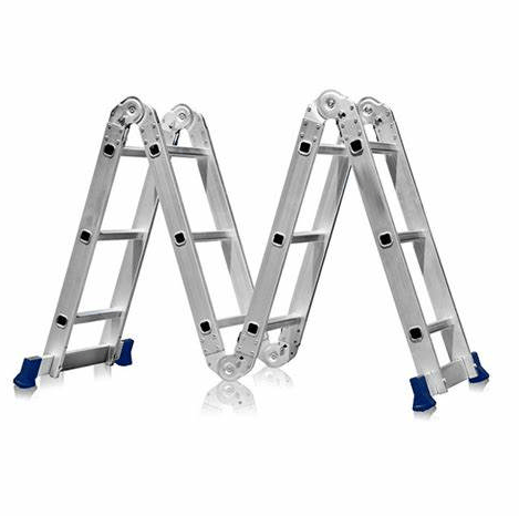 Uma característica distintiva deste modelo é a presença de chapas de aço que podem ser encaixadas, funcionando como plataforma e permitindo que a escada seja utilizada como andaime, ampliando suas funcionalidades.