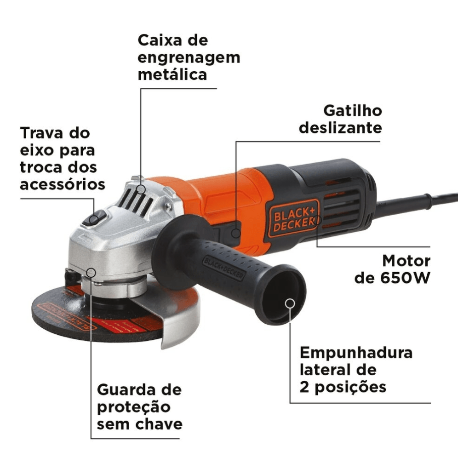 Esmerilhadeira Ângular 4-1/2 Pol. 650W 220V BLACK+DECKER G650B2