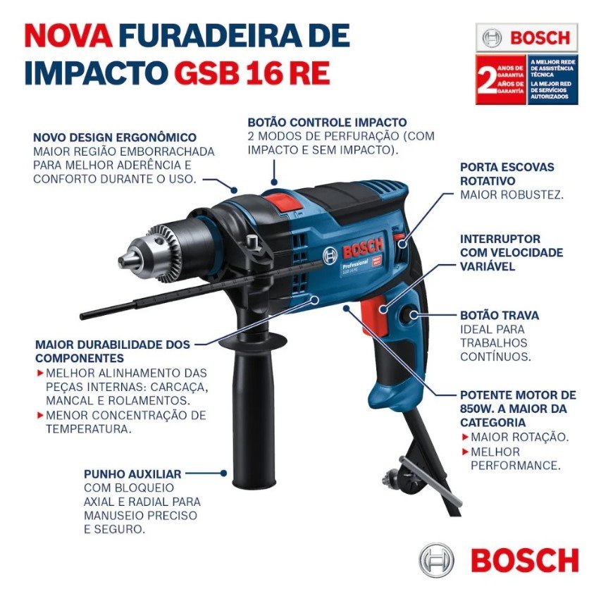 Furadeira de Impacto 1/2'' GSB 16 RE 850W +Maleta 220V 06012B90E1 -Bosch