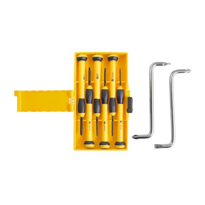 Jogo De Chaves De Fenda 20 Peças Barra de cromo vanádio Ponta magnetizada, facilitando o encaixe da ponta no parafuso Ponta endurecida para uma vida mais longa. Inclui (2) Chave de fenda de ponta plana 3/16" x 4" (5 x 100 mm) (1) Chave de fenda de ponta plana 3/16" x 6" (5 x 150 mm) (1) Chave de fenda de ponta padrão de 1/4" x 1,5" (6,5 x 38 mm) (2) Chave de fenda de ponta padrão de 1/4" x 4" (6,5 x 100 mm) (1) Chave de fenda de ponta padrão de 1/4" x 6" (6,5 x 150 mm) (2) Chave de fenda Phillips nº 1 x 4" (nº 1 x 101 mm) (1) Chave de fenda com ponta Phillips nº 2 x 1,5" (nº 2 x 38 mm) (2) Chave de fenda Phillips nº 2 x 4" (nº 2 x 101 mm) (6) chaves de fenda de precisão (2) Chaves de fenda de deslocamento ou Z