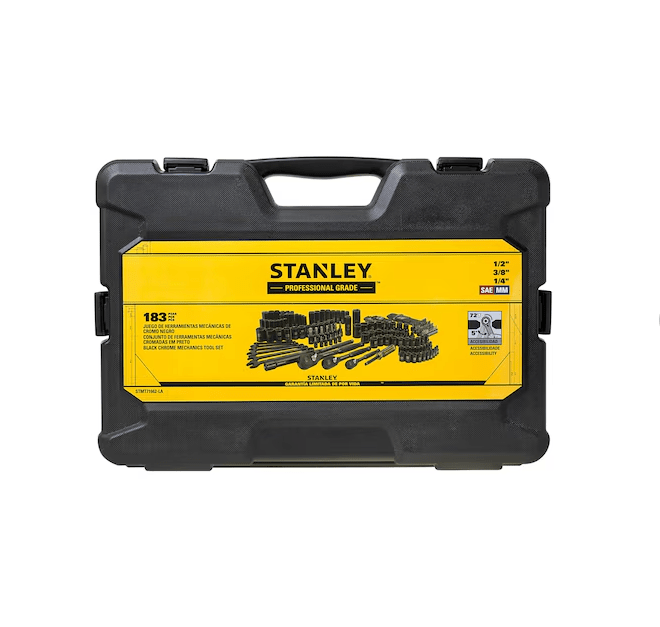 O Jogo de Ferramentas Stanley STMT71662LA é ideal para profissionais exigentes das áreas mecânica, automotiva e de manutenção em geral. Com 183 peças e acabamento em cromo preto, oferece durabilidade, visual moderno e excelente desempenho em qualquer tipo de serviço. Todas as peças são acondicionadas em uma maleta resistente e organizada, facilitando o transporte e o uso no dia a dia.