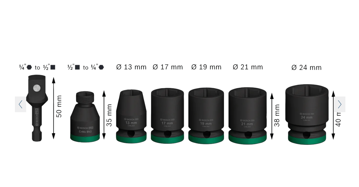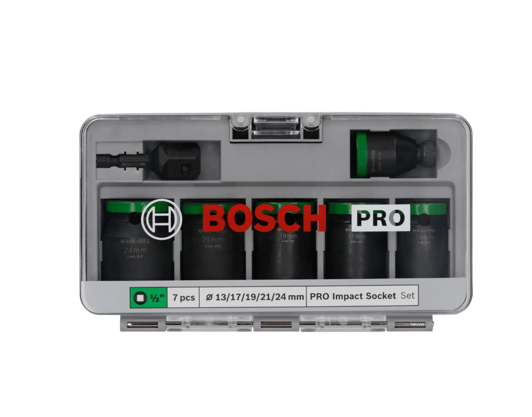 Jogo de Soquete de Impacto Enc. 1/2'' 13 a 21MM Curto Standard com 07 Peças PRO -Bosch
