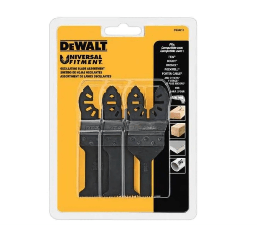 Ajuste universal, compatível com as principais marcas de ferramentas oscilantes Ideal para cortes rápidos, curvos e acabamento em diversos materiais Garantia de desempenho profissional em reformas e projetos de construção Inclui Lâmina Raspadora, Semicircular e para Corte de Madeira Kit com 3 lâminas Dewalt para corte preciso em madeira e outras superfícies