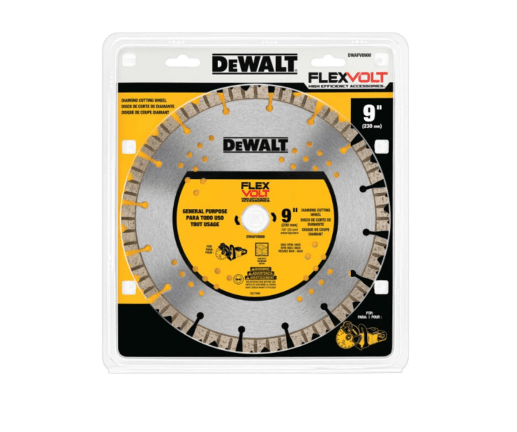 Lâmina de Serra Diamantadas segmentadas Flexvolt. Utilizada em cortadoras de concreto e asfalto e esmerilhadeiras. Para corte linear Longa vida útil: Lâmina segmentada com diamantes sintéticos para aumentar a vida útil ao cortar concreto, inclusive armado com ferro de até 1/4"".MENOR VIBRAÇÃO E DISTORÇÃO: Com um corpo de aço de alta qualidade que reduz as vibrações e distorções comparada com um disco abrasivo convencional. ALTA PERFORMANCE: Com uma alta concentração e distribuição consistente de diamantes sintéticos para uma alta performance Características Adicionais Design otimizado para a DCS690 FlexVolt, para máxima vida longa e produtividade em campo Aplicação Aplicação: Concreto e Asfalto Inclui (1) Lâmina de Serra Diamantada Segmentada