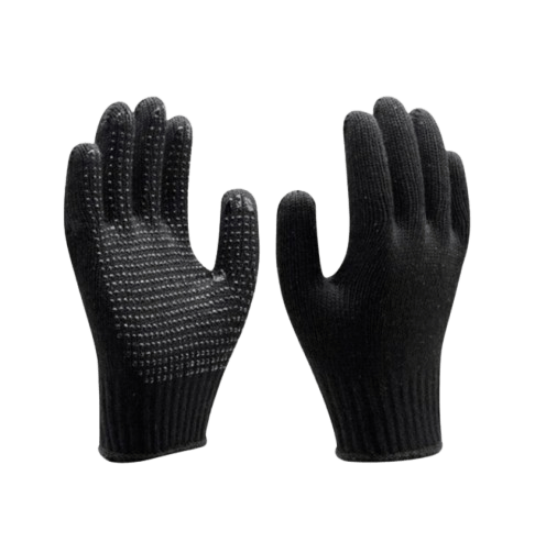 As luvas de segurança são Equipamentos de Proteção Individual (EPIs) indispensáveis para proteger as mãos contra diversos riscos em diferentes ambientes de trabalho e atividades do dia a dia. Tricotada em fibras naturais na cor preta com pigmento em PVC na palma, punho tricotado acabamento em overloque. Aplicação: Agricultura Construção Civil Metal Mecânica Montadoras Carga e Descarga