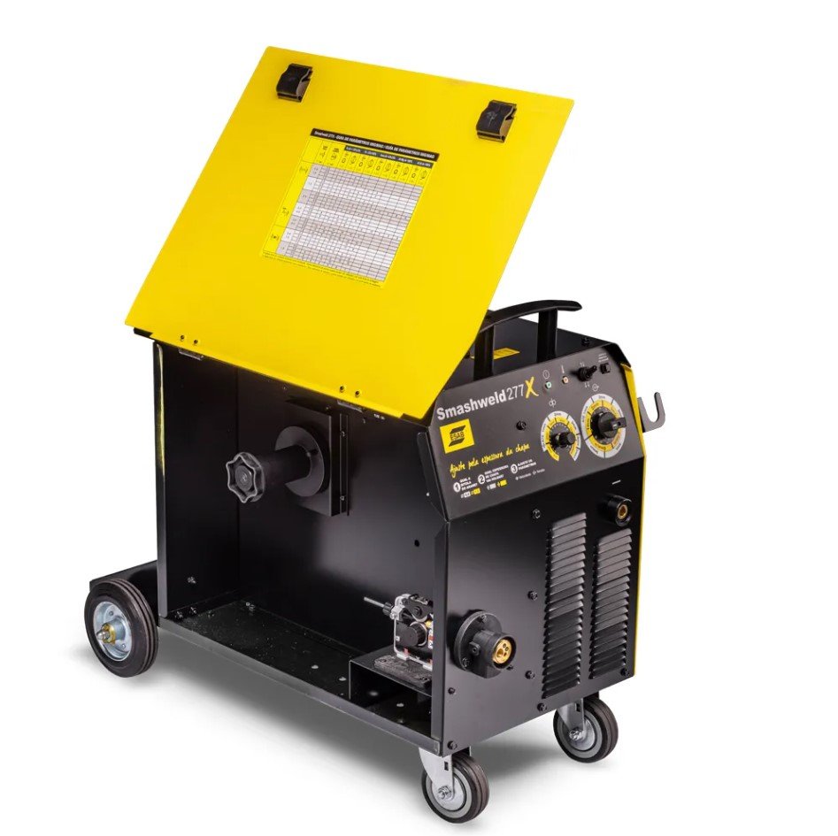 Máquina para soldagem com arames MIG/MAG ou tubulares e alimentador interno. A nova Smashweld tem um novo design, mais robusto, mais resistente, e com facilidades únicas pensando no soldador.