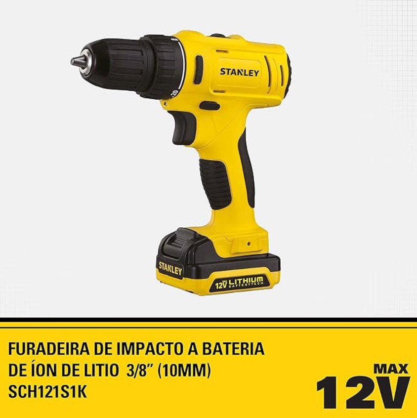Parafusadeira de Impacto 12V 3/8'' SCH121S1K-BR +Kit Carregamento Bivolt e Maleta -Stanley