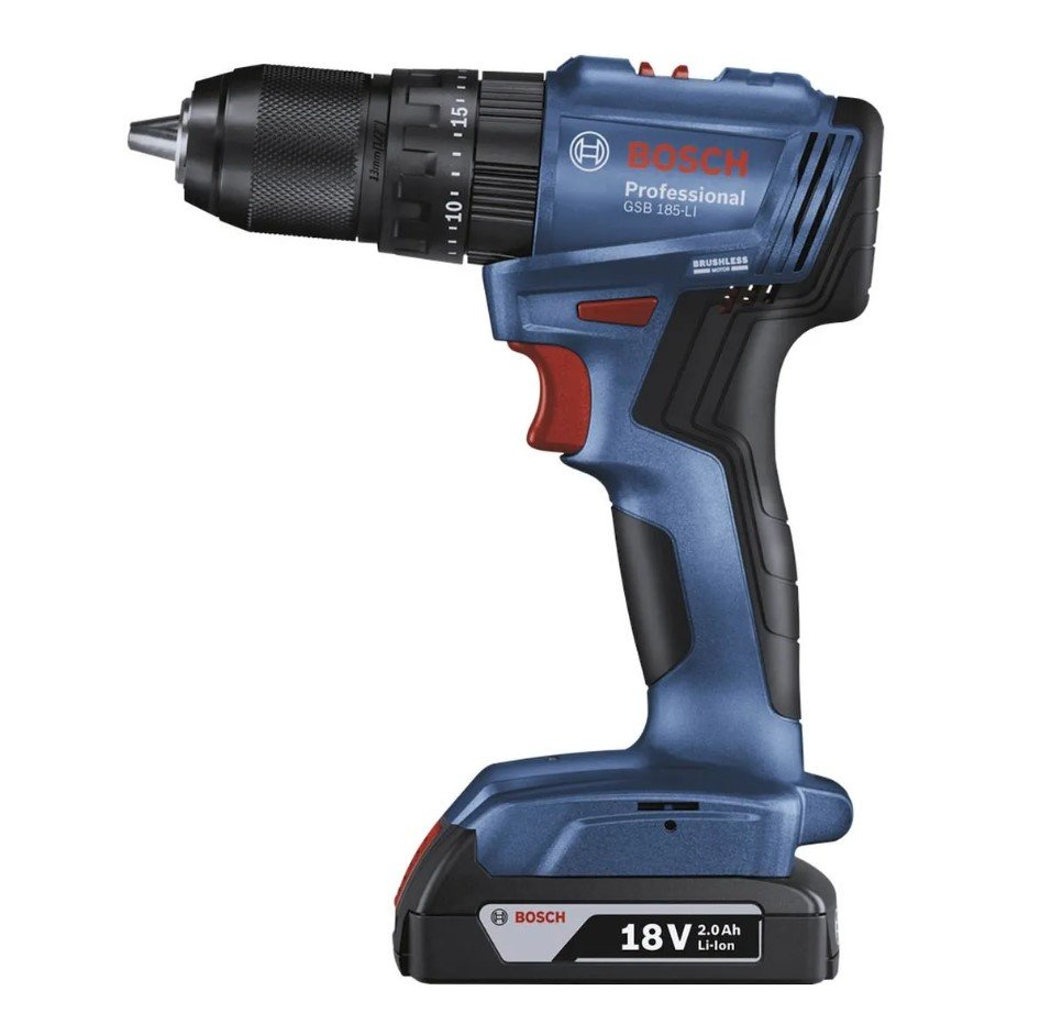 Parafusadeira de Impacto a Bateria 18V GSB 185-LI 1/2'' +1 Bateria 2ah +Carregador + 23 Acessórios +Maleta -Bosch A Parafusadeira e Furadeira de Impacto 18V GSB 185-LI Bosch é ideal para perfuração e parafusamento em MDF, metal e alvenaria. Também é indicada para fixação de acessórios e ferragens, perfuração de placas de drywall e fixação de peças em alvenaria. É uma ferramenta Brushless, ou seja, não vem com escovas de carvão e tem o dobro de vida útil, além de mais autonomia. Tem apenas 1.3kg, facilitando o uso durante o dia de trabalho, sem causar sobrecarga de peso ao usuário. Além de contar com design ergonômico que reduz a fadiga ao final do dia. Ideal para marceneiros, montadores de móveis, artesãos e instaladores em geral. Características: -Motor brushless que oferece o dobro de vida útil e 30% mais autonomia. -Mandril metálico que trava o acessório e oferece mais resistência e durabilidade. -Luz led na parte inferior da maquina que ilumina muito mais. -Ideal para parafusar e perfurar em madeira, metal, alvenaria e drywall. -Monitoramento da temperatura e sobre carga da bateria em display, garantindo maior vida útil. -Ferramenta 100% compatível com todas as baterias e carregadores 18V Bosch. Especificações Técnicas: -Torque Máx. (Nm) (Duro): 50 -Torque Mín. (Nm) (Leve) (Na primeira velocidade): 21 -Configurações de torque: 20 + 2 -Nº de rotações (sem carga) rpm Mínimo e Máximo): 0-500 / 1,900 -Diâmetro max. perfuração madeira (mm): 35mm -Diâmetro max. perfuração aço (mm): 10mm -Diâmetro máximo do parafuso (mm): 10mm -Mandril (polegadas): 1/2" -Mandril (mm): 13mm -Tipo de Mandril / Sistema de encaixe: Metálico de Aperto Rápido -Possui Impacto? Sim -Tecnologia do Motor: Brushless - Sem escovas de carvão Itens que Acompanham: -01 Parafusadeira e Furadeira de Impacto 18V GSB 185-LI Bosch; -01 Bateria 18V GBA 2Ah; -23 Acessórios (11 bits de parafusamento e 12 bits de perfuração para madeira, aço e alvenaria até 8mm); -01 Carregador GAÇ 18-20V -01 Maleta plástica.