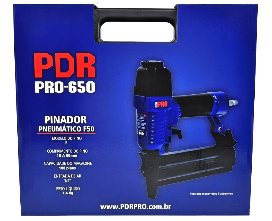 Pinador pneumático, para pinos tipo F. Indicado para cadeiras e gavetas, vimes, embalagens, rodapés e molduras. Modelo do pino: F Comprimento do pino: 15 a 50mm Capacidade do magazine: 100 pinos Peso líquido: 1,4 Kg Pressão de trabalho: 90 psi Entrada de ar: 1/4" Consumo de ar médio: 2 pcm Acompanha: 1 conector de ar 1/4", 2 chaves allen e 1 amostra de óleo. Embalagem: 1 maleta plástica com sleeve