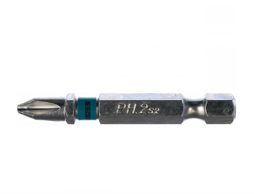 Bit é feito de aço. A dureza do bit é de 58-62 HR?. A base de um bit e uma haste sextavada de 0,6 cm (1/4 de polegada) de comprimento. Comprimento de um bit e 50 mm, tipo PH3 (cruciforme). Como proteção de contrafeito o bit tem um anel de cor com logotipo da marca GROSS.