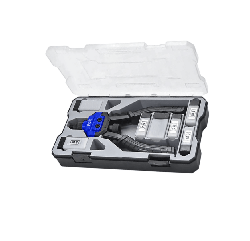 Indicada para unir chapas, tubos, perfis e outras peças, onde seja necessário uma fixação mais resistente. Indicado para uso industrial e automotivo. Tipo: Alavanca - 10" Acompanha: 6 Bicos Roscados M3 / M4 / M5 / M6 / M8 / M10 Material do corpo: Aço Carbono Pegas: Emborrachadas