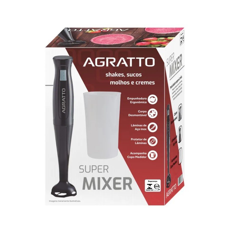Super Mixer Elétrico 200W com Copo 700ml MX-02 Preto 220V - Agratto